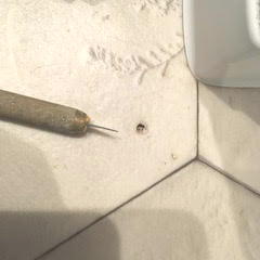 リフォーム中、引き渡し直前にクッションフロアに間違ってビス穴を開けたとの連絡。木部と違い完成度が下がることをご説明の上で対応、遠目には、そこに穴が空いていたことは全くわからない補修に大工さん感動の笑顔でした。