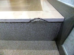 築30年以上の大邸宅リフォーム工事中に、何らかの理由で天然大理石製階段踏面の欠落が発生!現場に急行し数時間の作業で欠落部分は全く分からなくすることが出来ました。