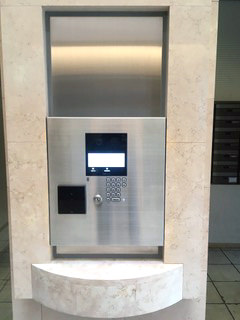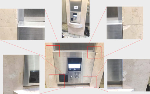 大規模マンション改修工事現場、セントラルインターホーン交換の際に生じた数々の大理石欠損。