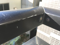 新築3ヶ月のアルミ製駐車場ゲートにつけられた無惨なキズ。オーナー様からは、ホームページから検索いただき、半日で完了しました。