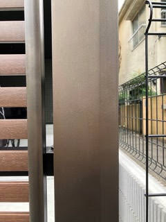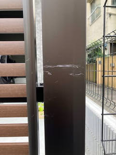 新築3ヶ月のアルミ製駐車場ゲートにつけられた無惨なキズ。オーナー様からは、ホームページから検索いただき、半日で完了しました。