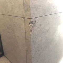 大規模マンション改修工事現場、セントラルインターホーン交換の際に生じた数々の大理石欠損。